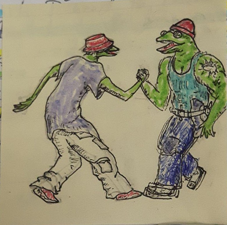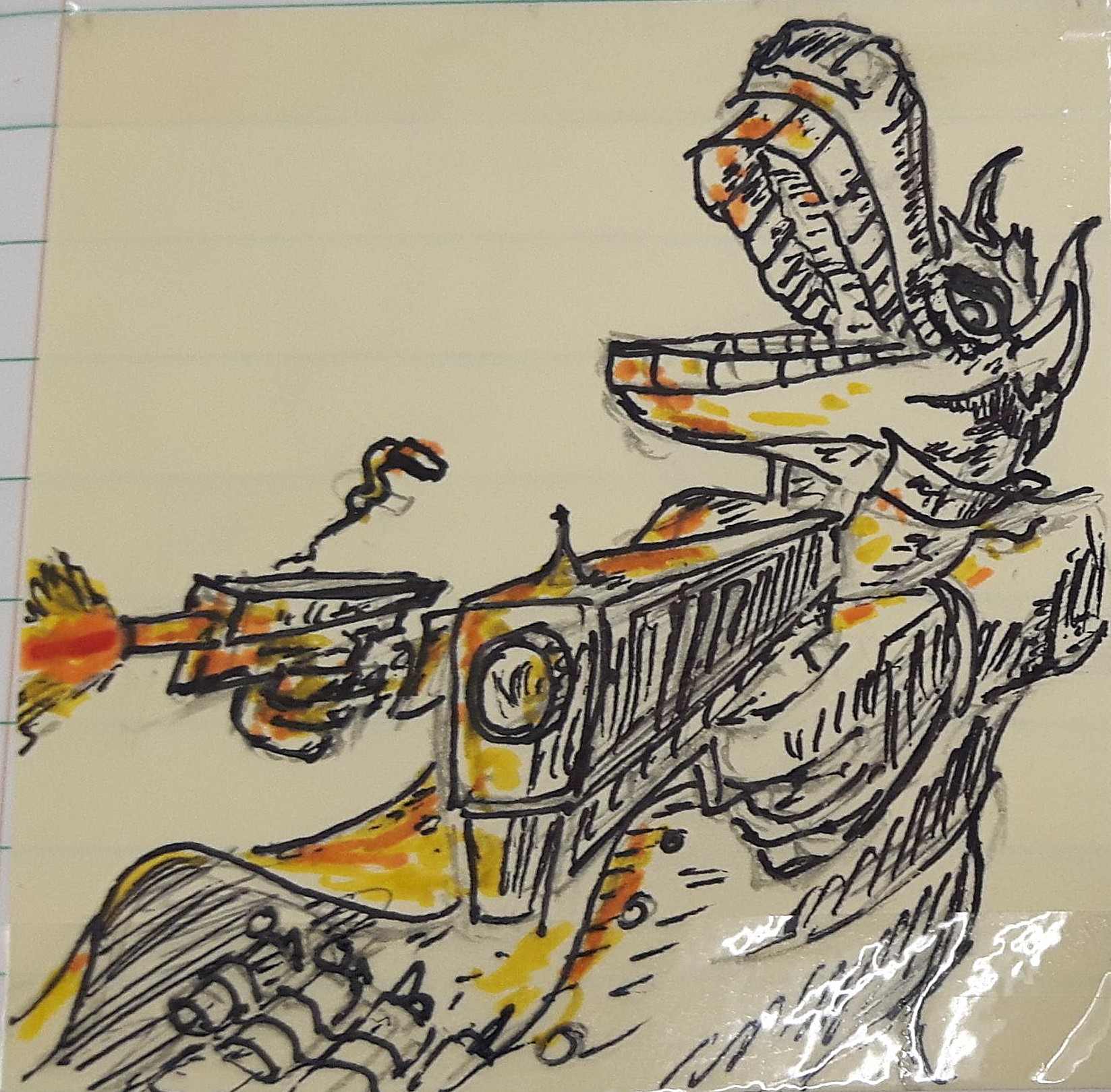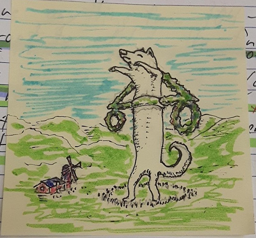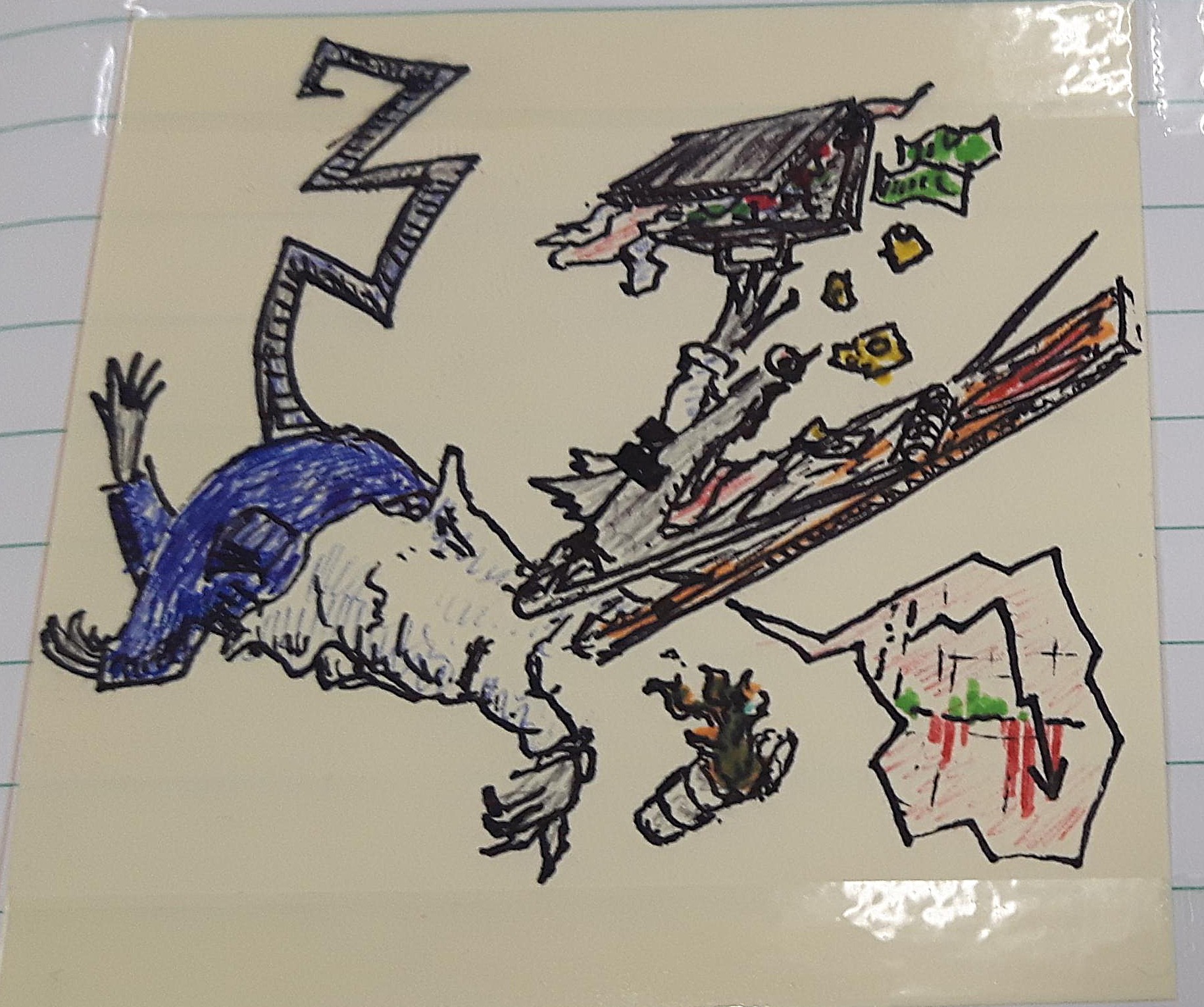 The following are sticky notes with a given prompt. I had friends/coworkers (mostly coworkers) give me a prompt and I would draw it out - these are the results (mouse over the images to see the prompts as titles):