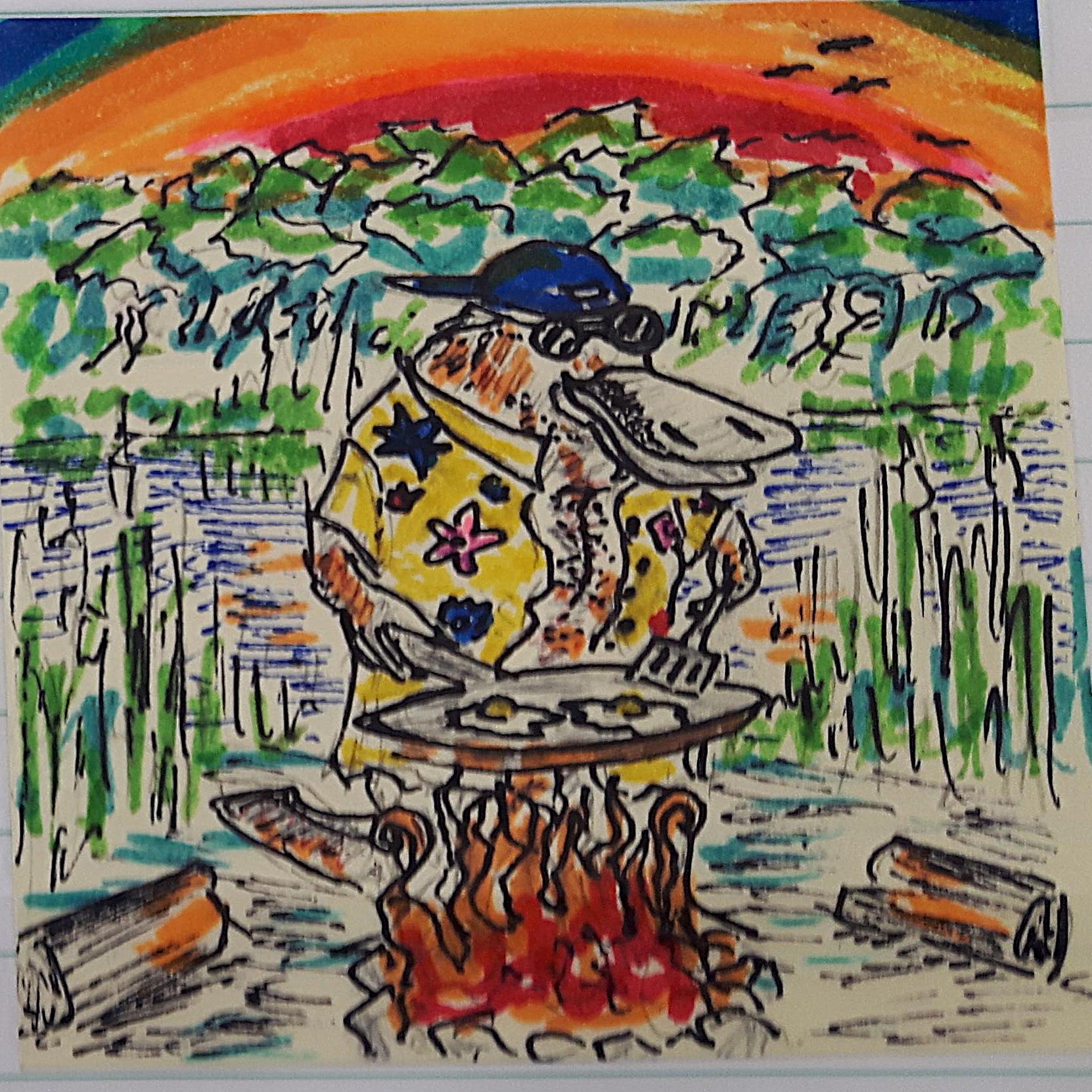 The following are sticky note drawings without a prompt: